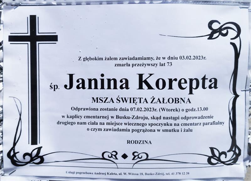⬛ NEKROLOGI 2023’05 [ 29 stycznia ÷ 4 lutego]: + Barbara Kądziela, + Urszula Kwiatkowska, + Helena Madej, + Marianna Smak, + Agata Winiarska, + Janina Korepta, + Piotr Drążek