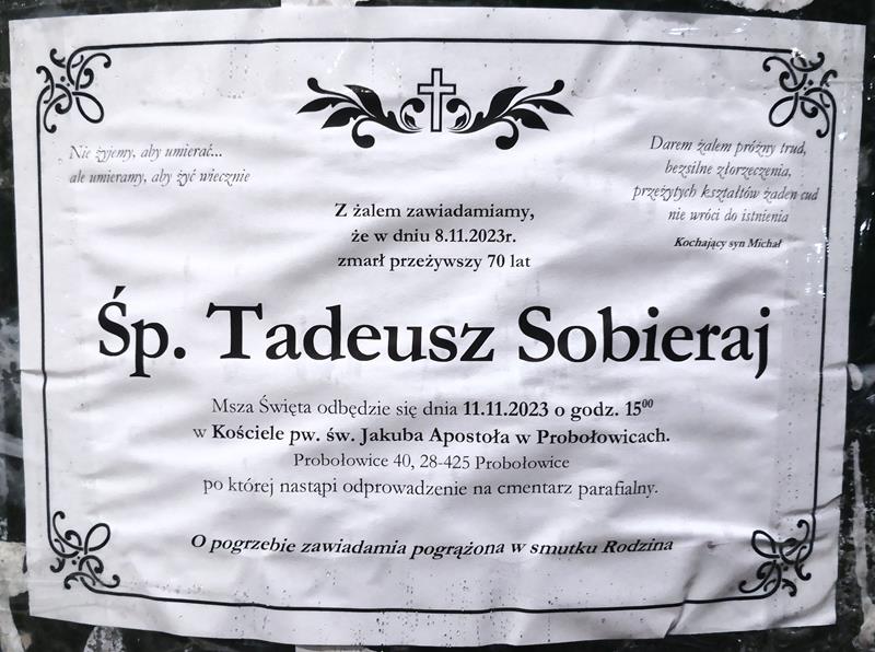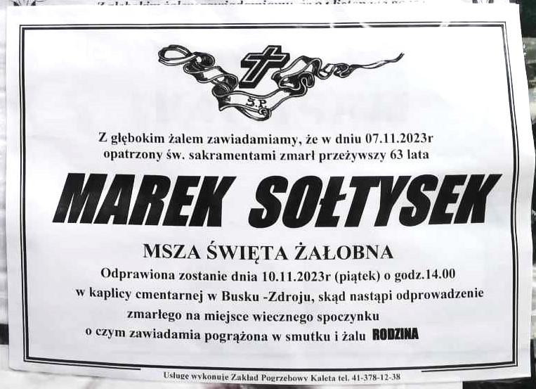 ⬛ NEKROLOGI 2023’45 [ 5 listopada ÷ 11 listopada ]: + Marcin Łabuz, + Jan Stanisław Grzegorczyk, + Marek Sołtysek, + Helena Szczepanowska, + Elżbieta Heinich z d. Lewińska, + Tadeusz Sobieraj, + Robert Berkowicz