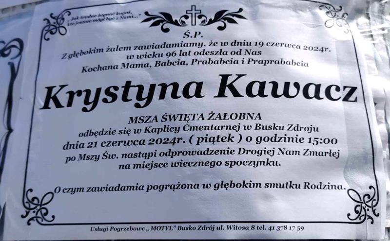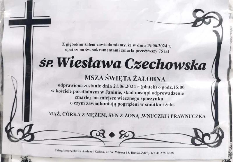 ⬛ NEKROLOGI 2024’25 [ 16 czerwca ÷ 22 czerwca ]: +Waleria Seremak, + Wiesława Czechowska, +Krystyna Kawacz, +Józefa Nieściur, +Bogdan Kozłowski - Internetowy Portal Informacyjny Mieszkańców Miasta i Gminy Busko-Zdrój