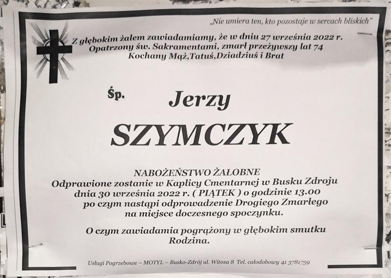 ⬛ NEKROLOGI 2022 [26 września ÷ 2 października]: +Jerzy Szymczyk, +Józef Kozłowski, +Klotylda Szczyrek, +Zofia Motyka