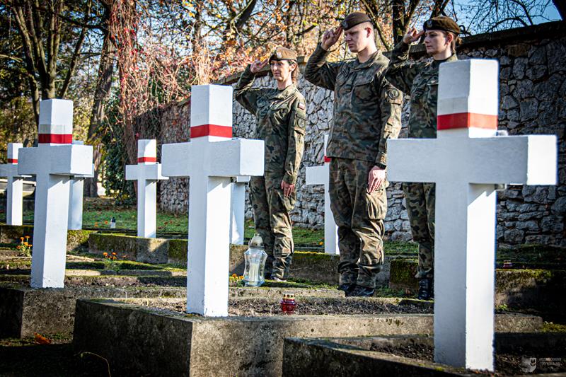 Żołnierze 10 Świętokrzyskiej Brygady Obrony Terytorialnej zapalili znicze pamięci oraz porządkowali groby bohaterów walk o niepodległość. Utrzymywanie tradycji dbania o porządek na grobach zmarłych żołnierzy oraz pomnikach pamięci ma miejsce nie tylko z racji zbliżającego się święta zmarłych, ale również kolejnej rocznicy święta Niepodległości.