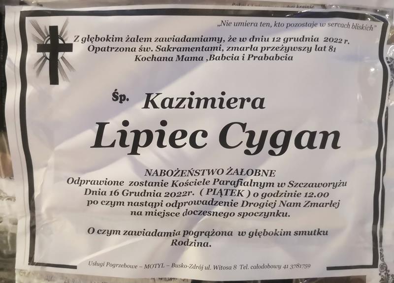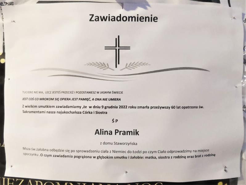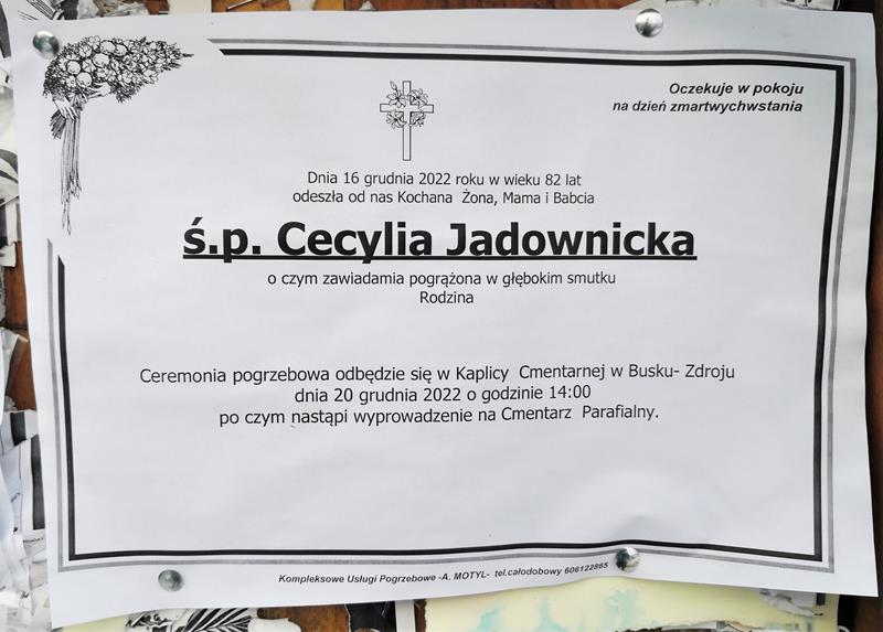 ⬛ NEKROLOGI 2022 [ 11 grudnia ÷ 17 grudnia]: + Alina Pramik z d. Staworzyńska, + Waldemar Braciszewicz, + Kazimiera Lipiec Cygan, + Cecylia Jadownicka, + Barbara Domagała