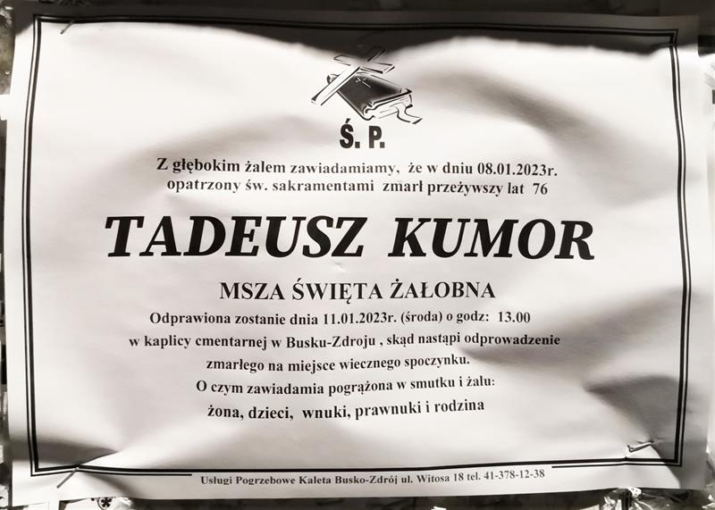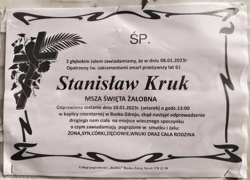 ⬛ NEKROLOGI 2023’02 [ 8 stycznia ÷ 14 stycznia]: + Stanisław Kruk, + Tadeusz Kumor, +Tomasz Malęga, + Stefan Mysior, + Władysława Jachymiak