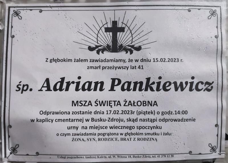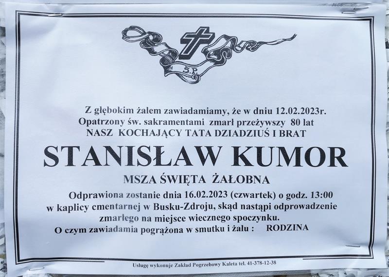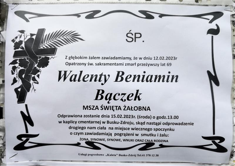 ⬛ NEKROLOGI 2023’07 [ 12 lutego ÷ 18 lutego]: + Walenty Beniamin Bączek, + Stanisław Kumor, + Zofia Pawelec, + Krystyna Borówka, + Janina Kolarz, + Adrian Pankiewicz, + Mariusz Stasiuk - Internetowy Portal Informacyjny Mieszkańców Miasta i Gminy Busko-Zdrój