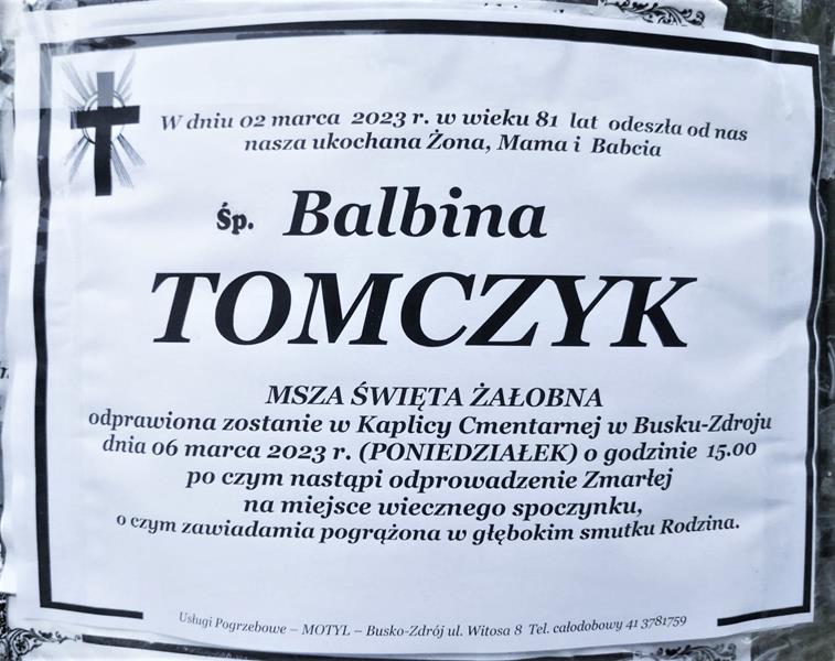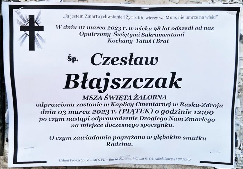 ⬛ NEKROLOGI 2023’09 [ 26 lutego ÷ 4 marca]: + Czesław Błajszczak, Piotr Prasałek, + Balbina Tomczyk - Internetowy Portal Informacyjny Mieszkańców Miasta i Gminy Busko-Zdrój