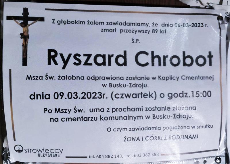 ⬛ NEKROLOGI 2023’10 [ 5 marca ÷ 11 marca]: + Ryszard Chrobot, + Józef Palonek, + Marian Anyż - Internetowy Portal Informacyjny Mieszkańców Miasta i Gminy Busko-Zdrój