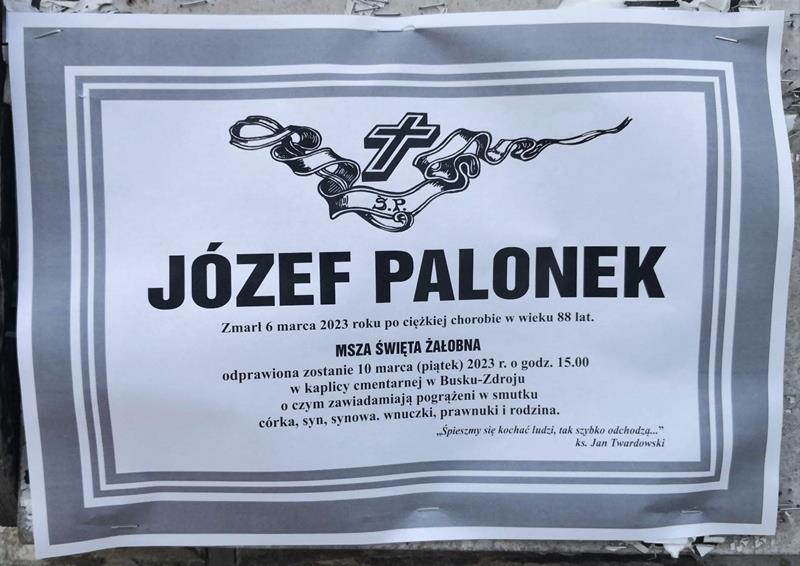 Jarosław Kruk: Szczególne wyrazy współczucia dla Rodziny zmarłego śp. Józefa Palonek. Wieczne odpoczywanie Racz Mu dać Panie…