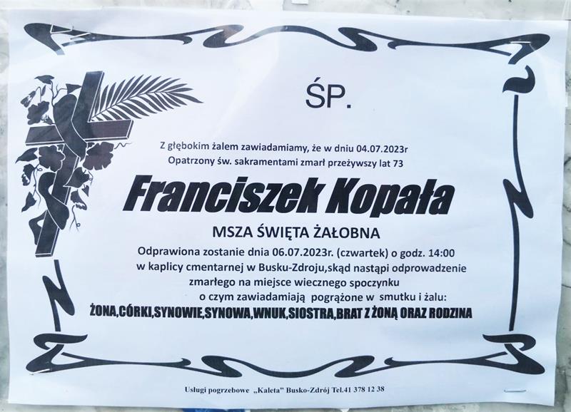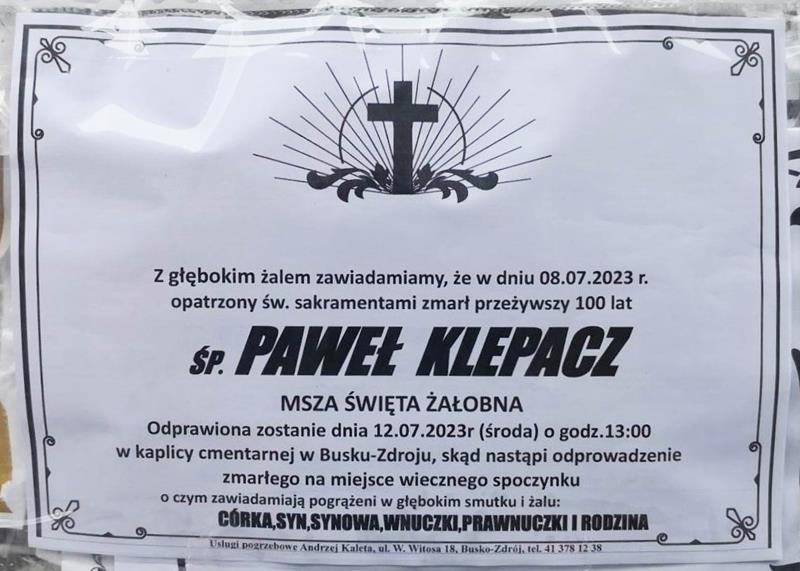 ⬛ NEKROLOGI 2023’27 [ 2 lipca ÷ 8 lipca ]: + Kazimiera Grochowina, + Maria Mateńko, + Franciszek Kopała, + Paweł Klepacz - Internetowy Portal Informacyjny Mieszkańców Miasta i Gminy Busko-Zdrój