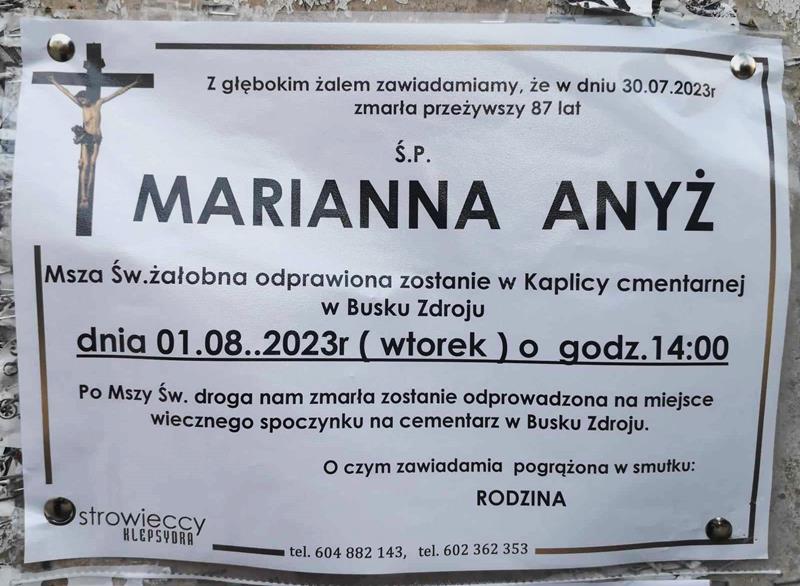 ⬛ NEKROLOGI 2023’31 [ 30 lipca ÷ 5 sierpnia ]: + Marianna Anyż, + Elżbieta Łoboda, + Zenon Skrzypek, + Stefan Michalski, + Jan Sokołowski, + Marcin Rybitwa, + Leszek Seremak - Internetowy Portal Informacyjny Mieszkańców Miasta i Gminy Busko-Zdrój