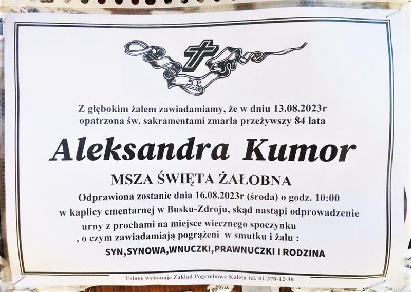 ⬛ NEKROLOGI 2023’33 [ 13 sierpnia ÷ 19 sierpnia ]: + Aleksandra Kumor, + Krzysztof Ostrowski, + Henryk Jach, + Mieczysław Kruk - Internetowy Portal Informacyjny Mieszkańców Miasta i Gminy Busko-Zdrój