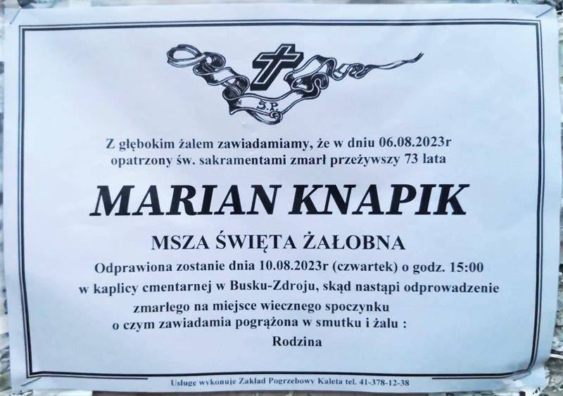 ⬛ NEKROLOGI 2023’32 [ 6 sierpnia ÷ 12 sierpnia ]: + Marcin Rybitwa | + Marian Knapik, + Jadwiga Grońska z d. Zięba, + Mirosława Ewa Połetek z d. Kałamaga - Internetowy Portal Informacyjny Mieszkańców Miasta i Gminy Busko-Zdrój