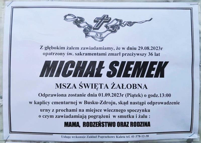 ⬛ NEKROLOGI 2023’35 [ 27 sierpnia ÷ 2 września ]: + Michał Siemek, Robert Trzeszkoski - Internetowy Portal Informacyjny Mieszkańców Miasta i Gminy Busko-Zdrój