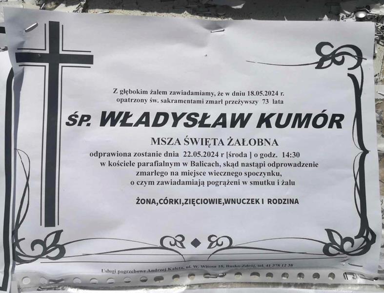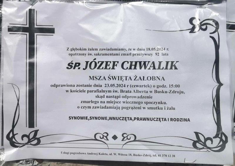 Jarosław Kruk: Szczególne wyrazy współczucia pragnę przekazać Rodzinie i bliskim śp. Józefa Chwalika.