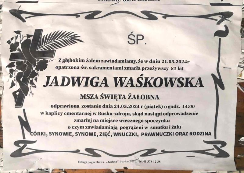 ⬛ NEKROLOGI 2024’21 [ 19 maja ÷ 25 maja ]: +Sławomir Szymanowski, +Krystyna Kunderak z d.Drab, +Halina Ścisło, +Józef Chwalik, +Władysław Kumór ▒ +Helena Jewiarz, +Jadwiga Waśkowska ❇️ Katechezy u św. Brata Alberta