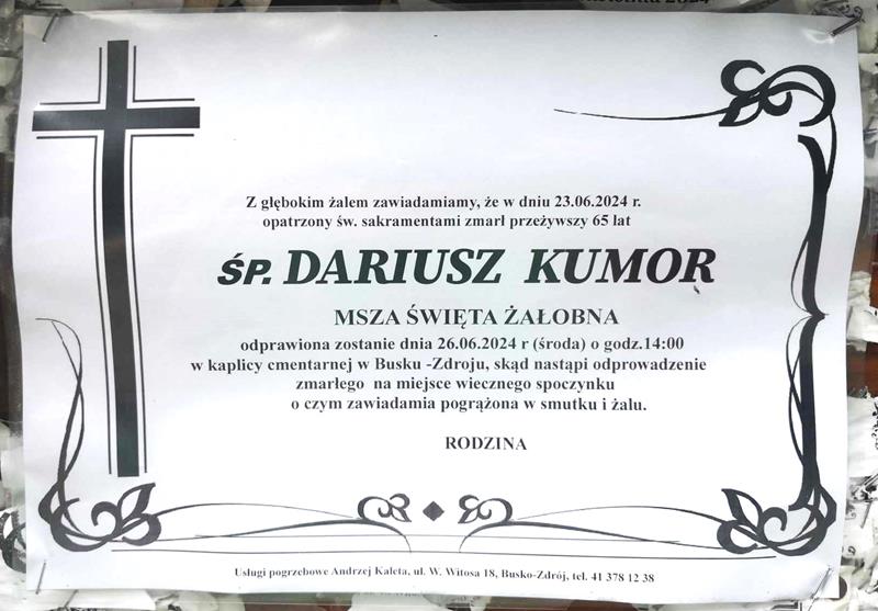 ⬛ NEKROLOGI 2024’26 [ 23 czerwca ÷ 29 czerwca ]: +Bogdan Kozłowski ▒ +Dariusz Kumor, +Stanisław Domagała, +lek. Stanisław Salwa, +Irena Dymko, +Krystyna Zych - Internetowy Portal Informacyjny Mieszkańców Miasta i Gminy Busko-Zdrój
