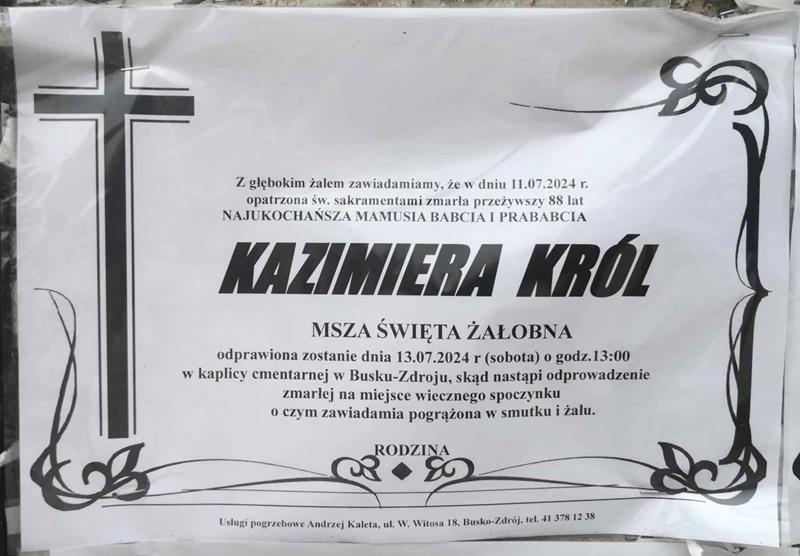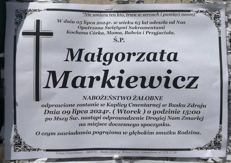 ⬛ NEKROLOGI 2024’28 [ 07 lipca ÷ 13 lipca ]: +Małgorzata Markiewicz ▒ +Helena Papier, +Kazimiera Król, +Danuta Markiewicz, + Henryk Kasza