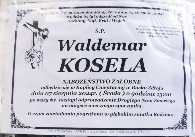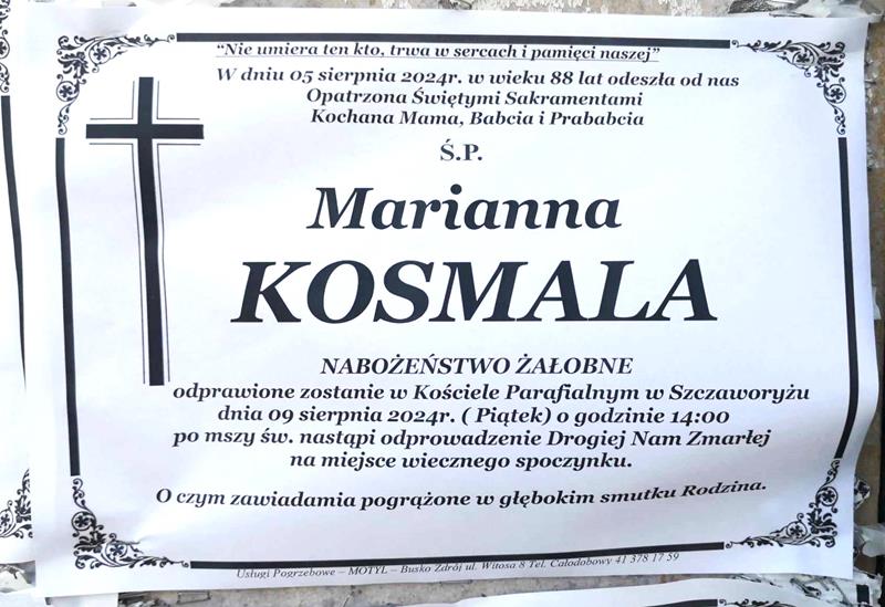 ⬛ NEKROLOGI 2024’32 [ 04 sierpnia ÷ 10 sierpnia ]: +Wojciech Domagała ◙ +Waldemar Kosela, +Władysława Mazur, +Marianna Kosmala, +Anna Boczniewicz, +Jadwiga Jaskólska, +Józefa Kopała, +Monika Kowalska, +Teodora Paniewska