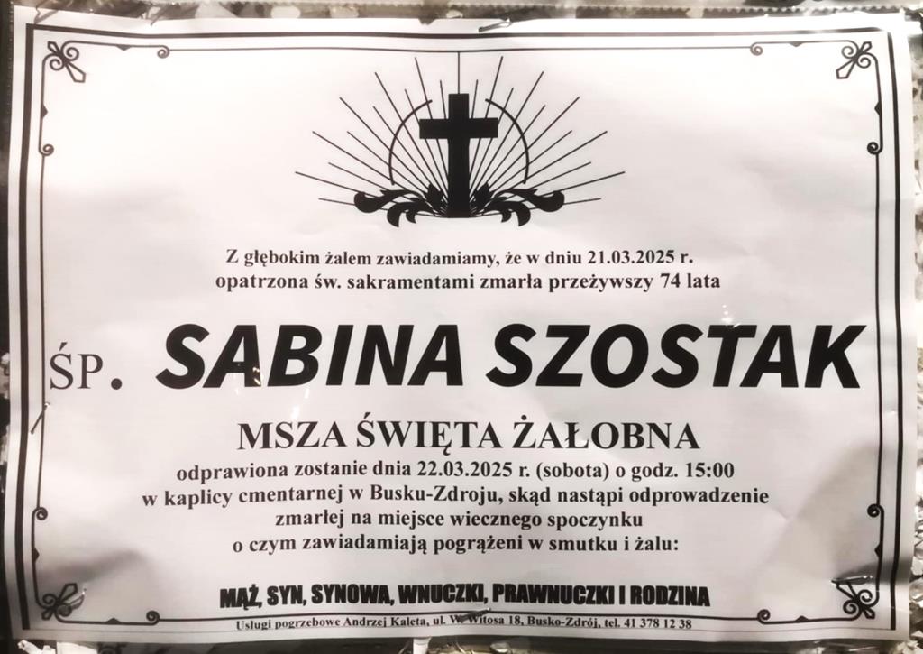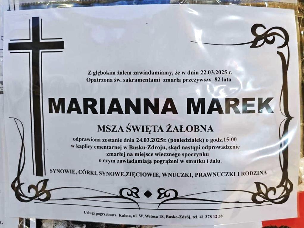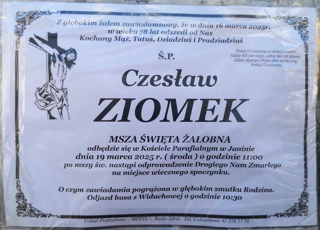 ⬛ NEKROLOGI 2025’12 [ 16 marca ÷ 22 marca]: +Ivo Suchoń ⬛ +Czesław Ziomek, +Mieczysław Adamczyk, +Sabina Dybała z d.Pałys, +Sebastian Farmas, +Sabina Szostak, +Jan Nocoń, +Marianna Marek - Internetowy Portal Informacyjny Mieszkańców Miasta i Gminy Busko-Zdrój