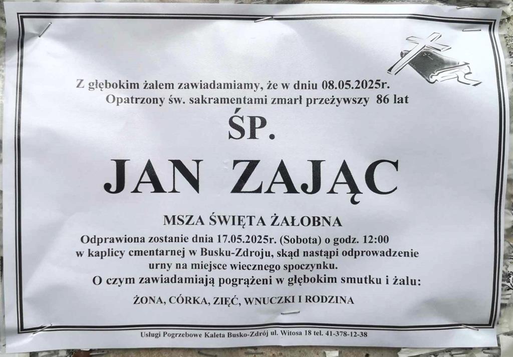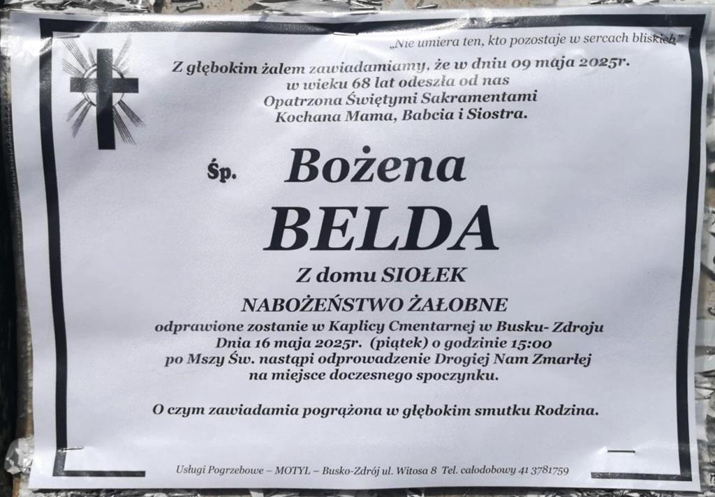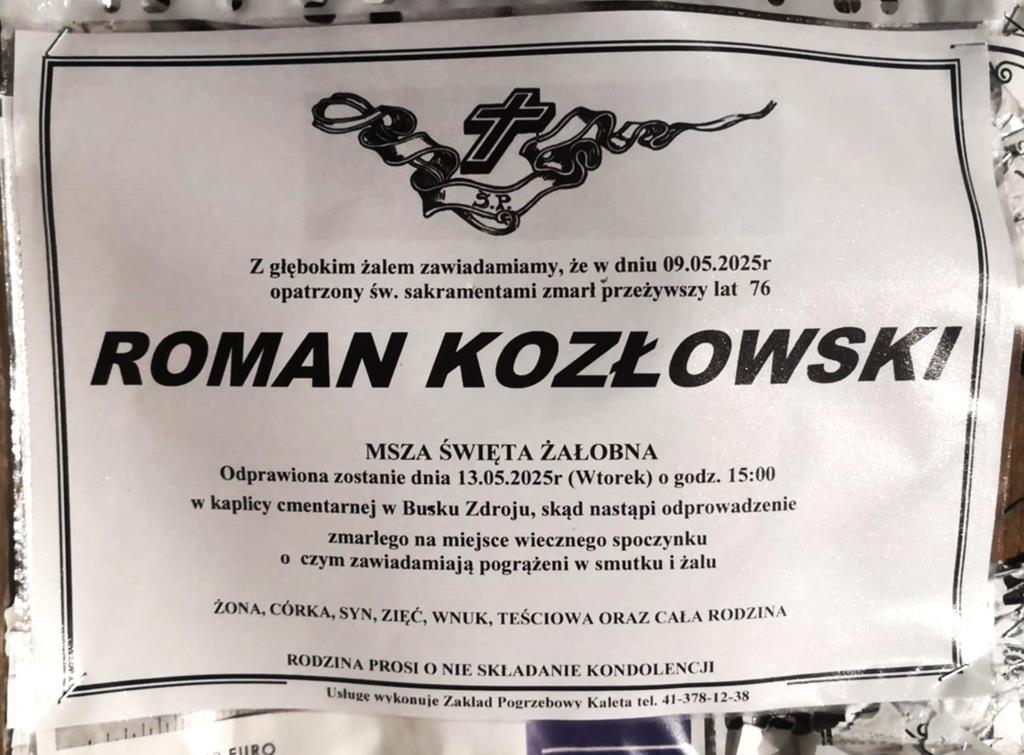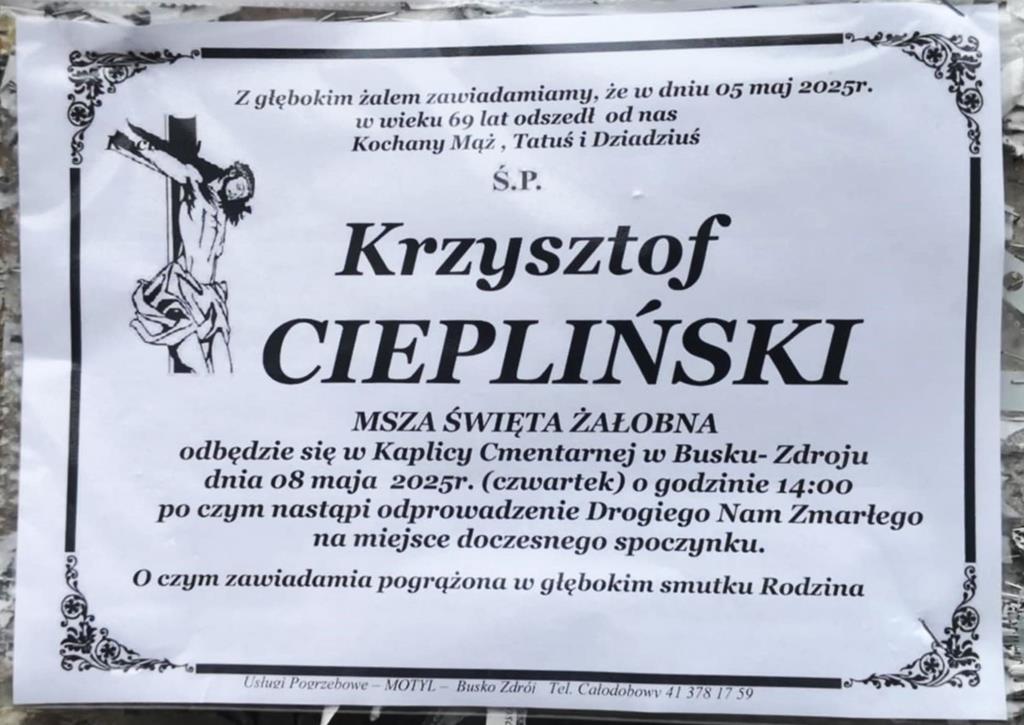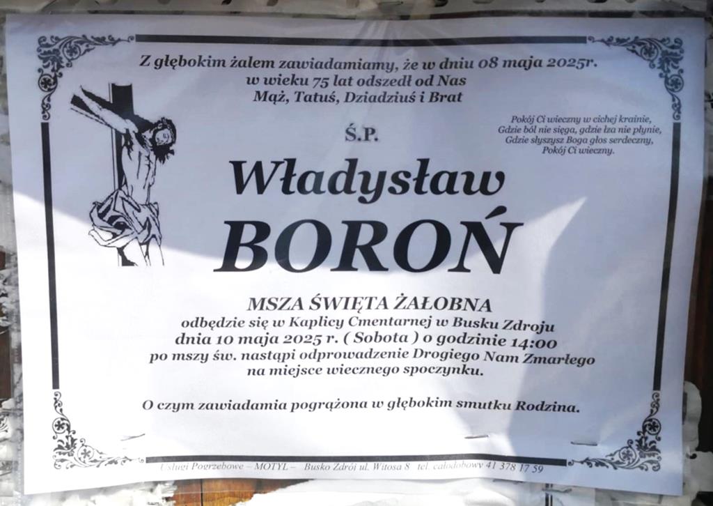 ⬛ NEKROLOGI 2025’19 [ 4 maja ÷ 10 maja]:+Krzysztof Ciepliński, +Władysław Boroń, +Roman Kozłowski, +Zofia Domagała, +Jan Zając, +Bożena Belda z d.Siołek, +Adam Bąk, +Maria Bąk, +Genowefa Chabiera