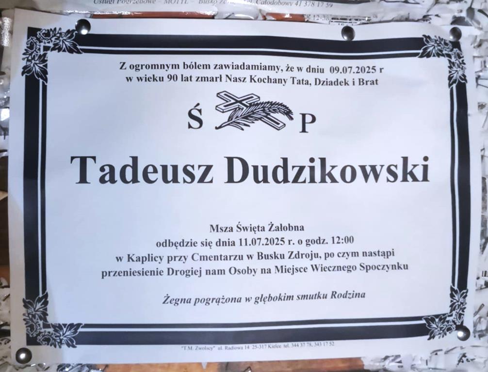 ⬛ NEKROLOGI 2025’28 [ 6 lipca ÷ 12 lipca]: +Robert Nowaczkiewicz, +Tadeusz Dudzikowski, +Genowefa Korzeń - Internetowy Portal Informacyjny Mieszkańców Miasta i Gminy Busko-Zdrój