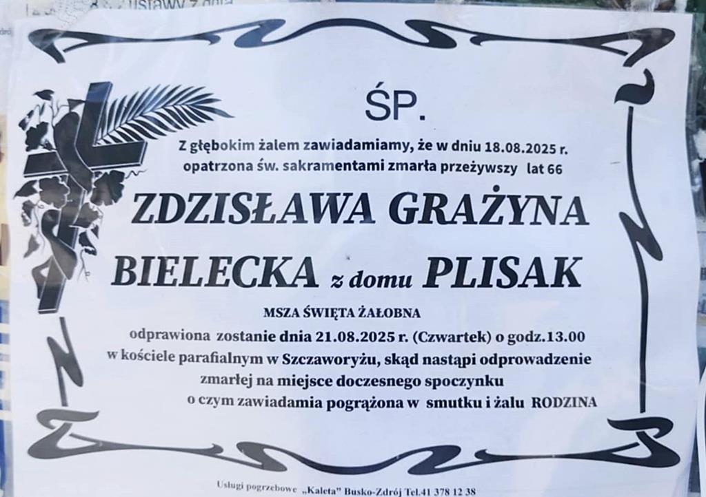 ⬛ NEKROLOGI 2025’34 [ 17 sierpnia ÷ 23 sierpnia]: +Stefan Błaszkiewicz, +Marianna Zych ⬛ +Krystyna Śmigaszewska, +Zofia Gumuła, +Teodozja Bałaga, +Cecylia Łabuz, +Zdzisława Grażyna Bielecka z d.Plisak, +Józefa Pitek, +Adam Trzepałka - Internetowy Portal Informacyjny Mieszkańców Miasta i Gminy Busko-Zdrój