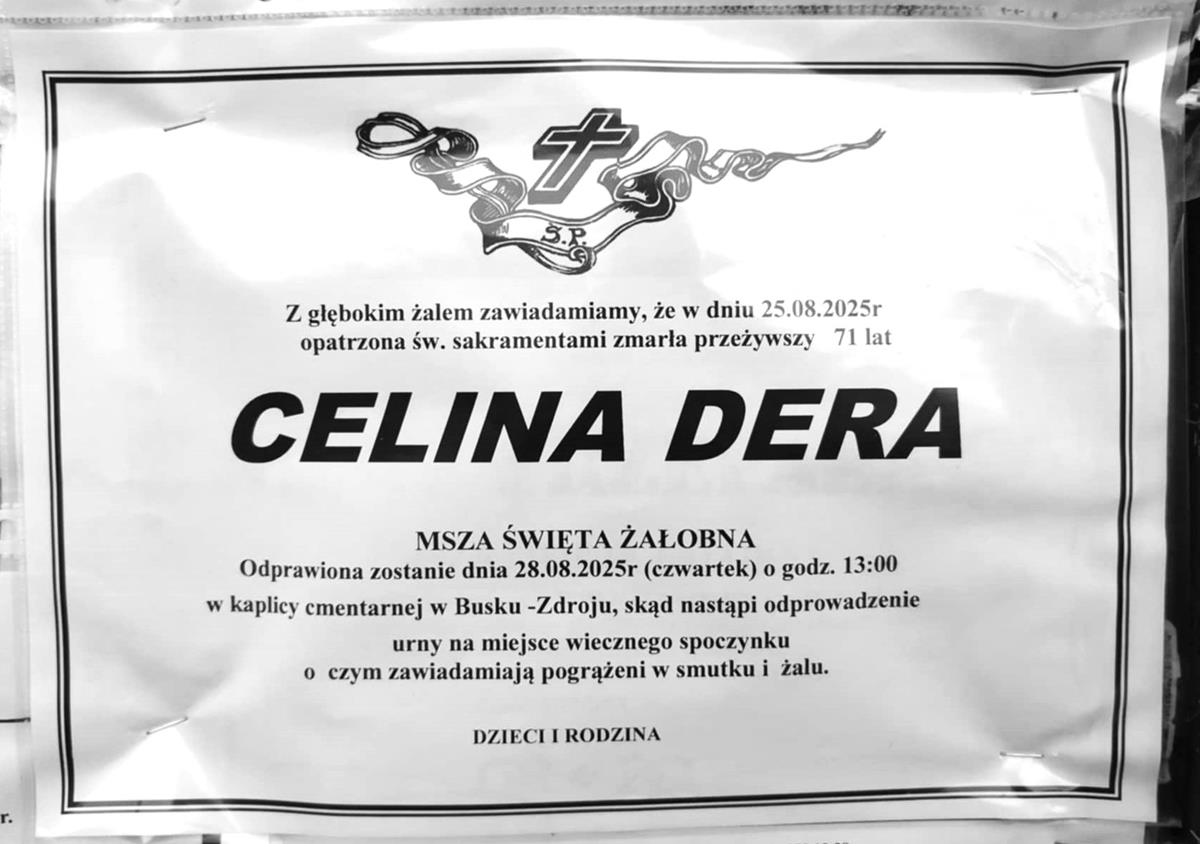 ⬛ NEKROLOGI 2025’35 [ 24 sierpnia ÷ 30 sierpnia]: +Józefa Pitek, +Adam Trzepałka ⬛ +Józef Żelawski, +Helena Rokosz, +Celina Dera, +Leszek Molenda, +Kazimierz Kuc, +Teresa Staroszczak, +Waldemar Kasza - Internetowy Portal Informacyjny Mieszkańców Miasta i Gminy Busko-Zdrój