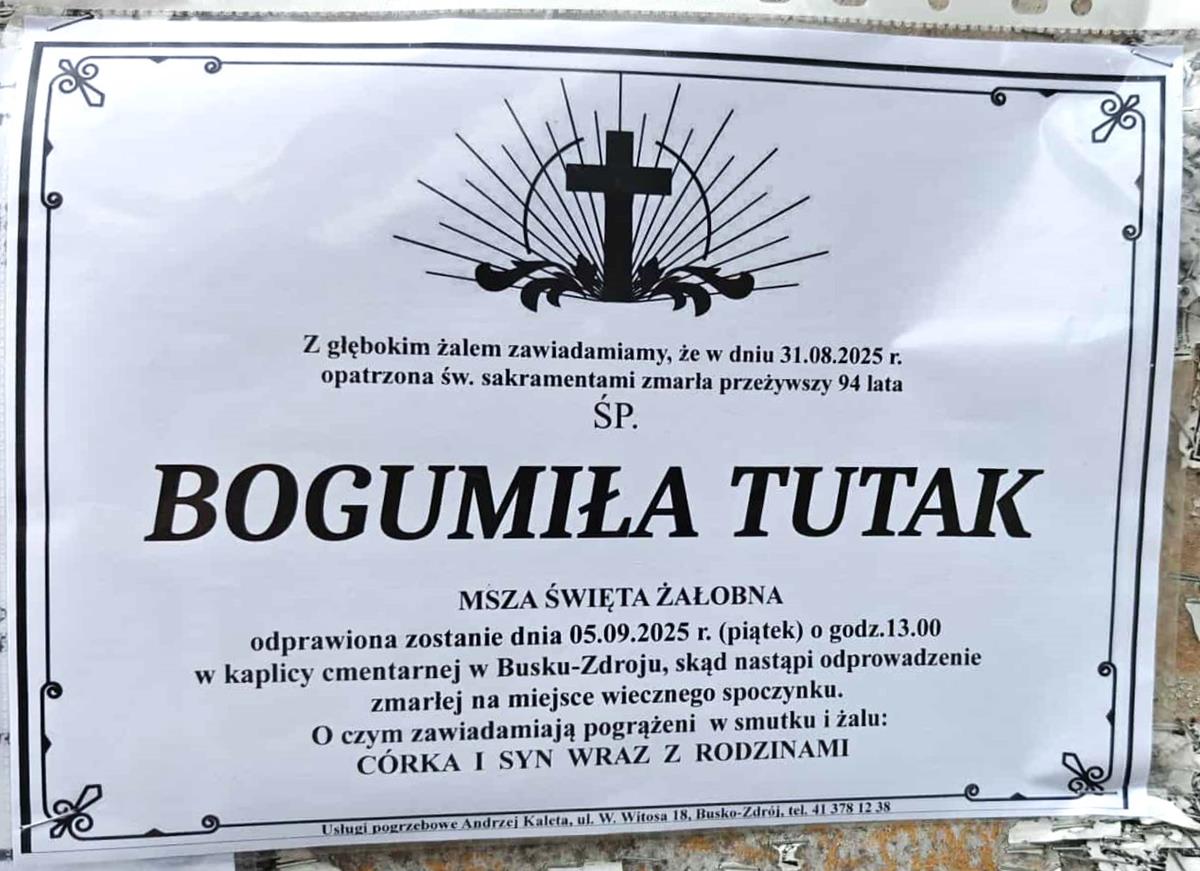 ⬛ NEKROLOGI 2025’35 [ 24 sierpnia ÷ 30 sierpnia]: +Józefa Pitek, +Adam Trzepałka ⬛ +Józef Żelawski, +Helena Rokosz, +Celina Dera, +Leszek Molenda, +Kazimierz Kuc, +Teresa Staroszczak, +Waldemar Kasza