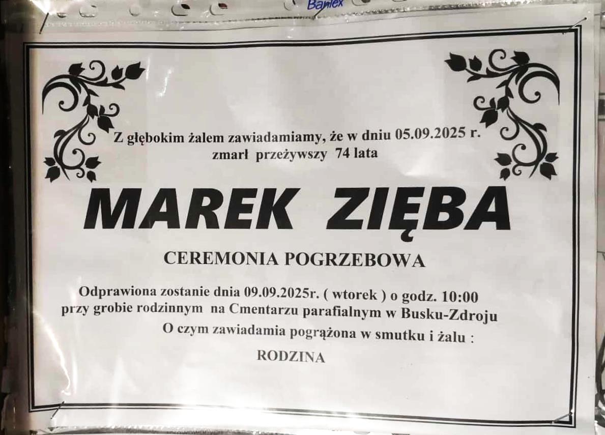 Składam szczere wyrazy współczucia Rodzinie i bliskim śp. Marka Zięby’.