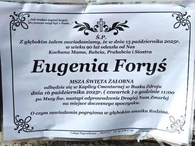 ⬛ NEKROLOGI 2025’41 [ 5 października ÷ 11 października]: +Julianna Pośpiech, +Natalia Grabowska, +Antoni Łukasik, +Maria Nowak-Pila, +Bogdan Pokrzywa, +Adolf Kopciara, +Krzysztof Grzesik, +Janusz Ziółkowski, +Dariusz Marzec