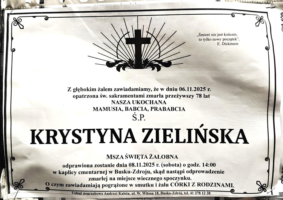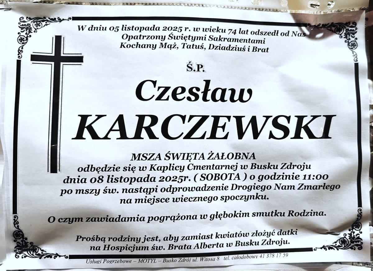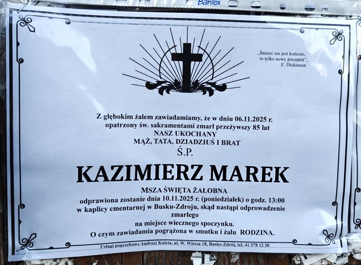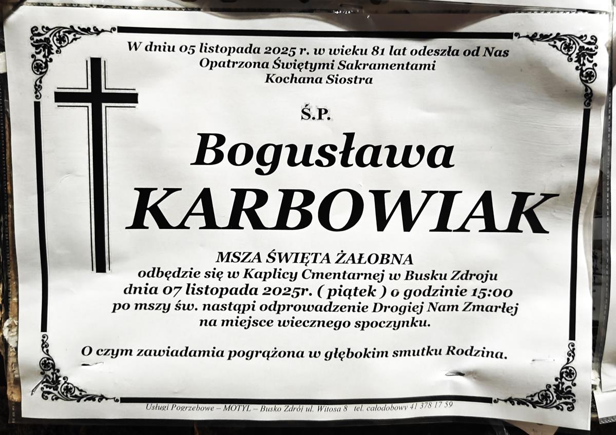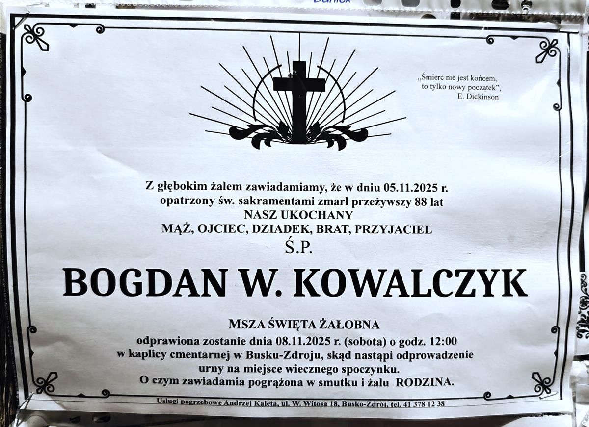 ⬛ NEKROLOGI 2025’45 [ 2 listopada ÷ 8 listopada]: +Edward Trela ⬛ +Ryszard Moczulski, +Bogusława Karbowiak, +Czesław Karczewski, +Bogdan W.Kowalczyk, +Krystyna Zielińska, +Kazimierz Marek, +Janina Bonarska, +Artur Karcz - Internetowy Portal Informacyjny Mieszkańców Miasta i Gminy Busko-Zdrój