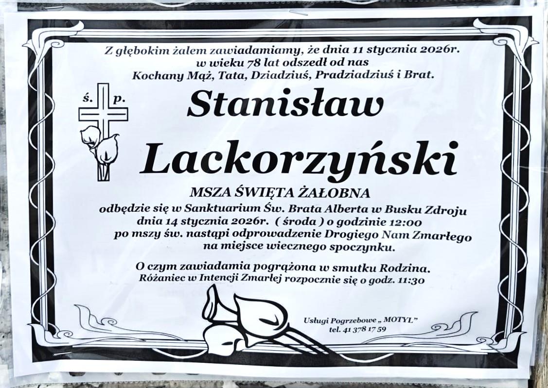 Rodzinie i bliskim śp. Stanisława Lackorzyńskiego  składam szczere wyrazy współczucia.