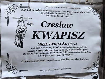 ⬛ NEKROLOGI 2026’03 [ 11 stycznia ÷ 17 stycznia]: +Achim Kappler ⬛ +Stanisław Lackorzyński, +Krzysztof Mołas, +Stanisław Zając, +Czesław Kwapisz, +Romuald Szafarski, +Józef Graca, +Józef Rutkowski - Internetowy Portal Informacyjny Mieszkańców Miasta i Gminy Busko-Zdrój