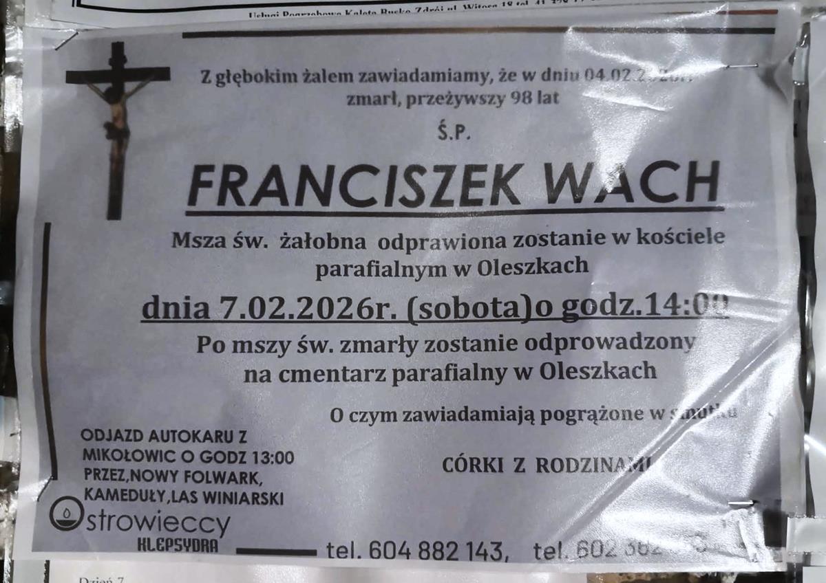 2 odpowiedzi do “⬛ NEKROLOGI 2026’06 [ 1 lutego ÷ 7 lutego]: +Katarzyna Henryka Łukaszek, +Regina Góryjowska, +Bonifacy Służalski, +Agnieszka Siemieniec, +Alfred Stępień, +Jacek Krawczyk, +Franciszek Wach, +Justyna Kuc, +Janusz Barański”