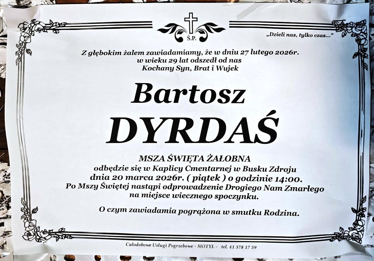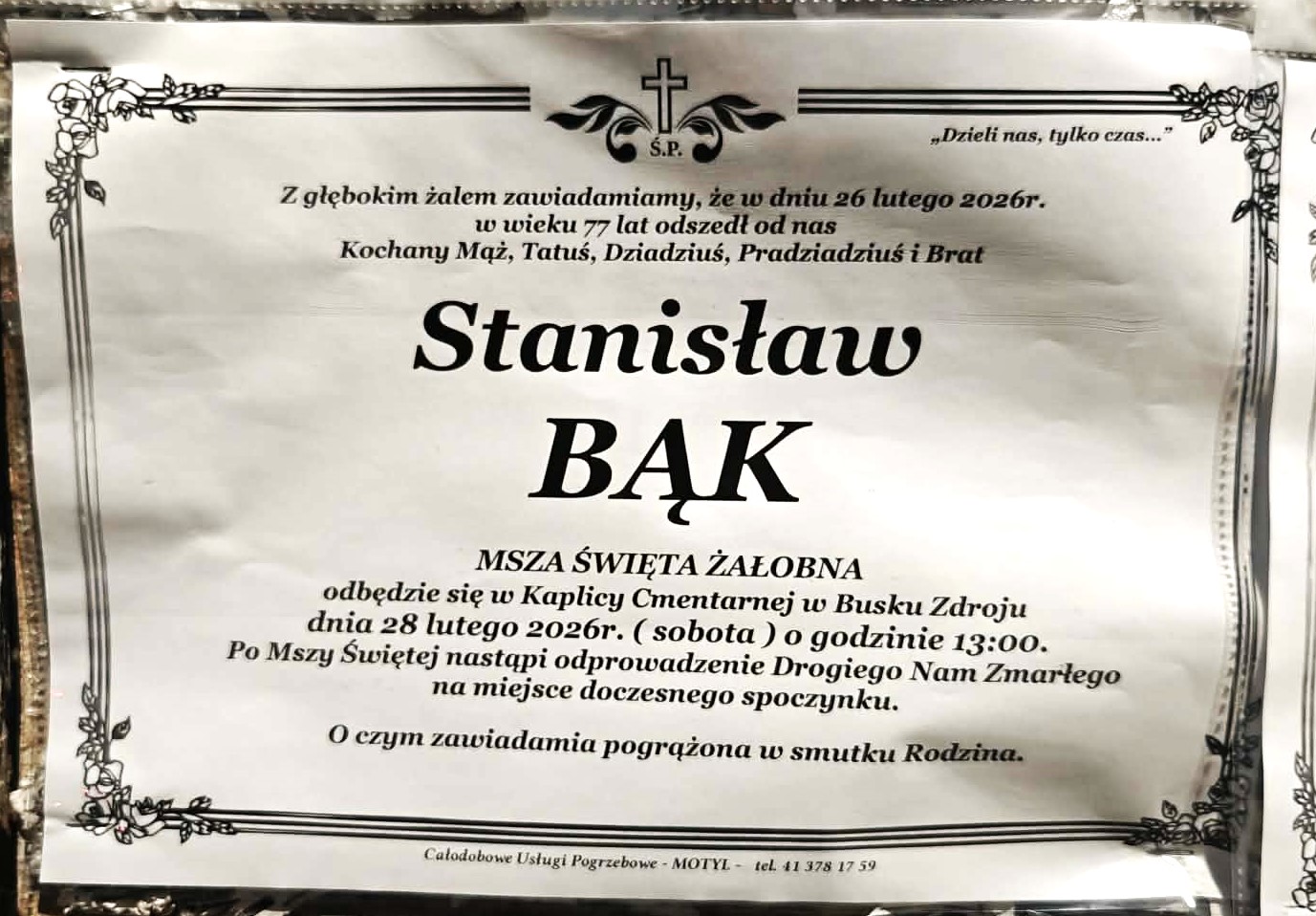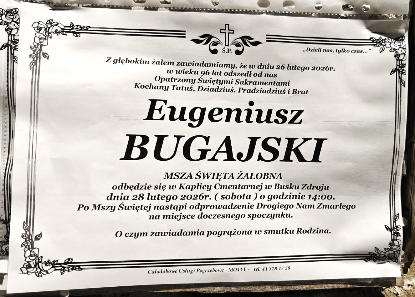 Jedna odpowiedź do “⬛ NEKROLOGI 2026’09 [ 22 lutego ÷ 28 lutego]: +Dorota Gładyś, +Leszek Mierzwa ⬛ +Sylwestra Kardynał, +Zofia Kulczycka, +Maria Szczukiewicz, +Stanisław Bąk, +Eugeniusz Bugajski, +Bartosz Dyrdaś”