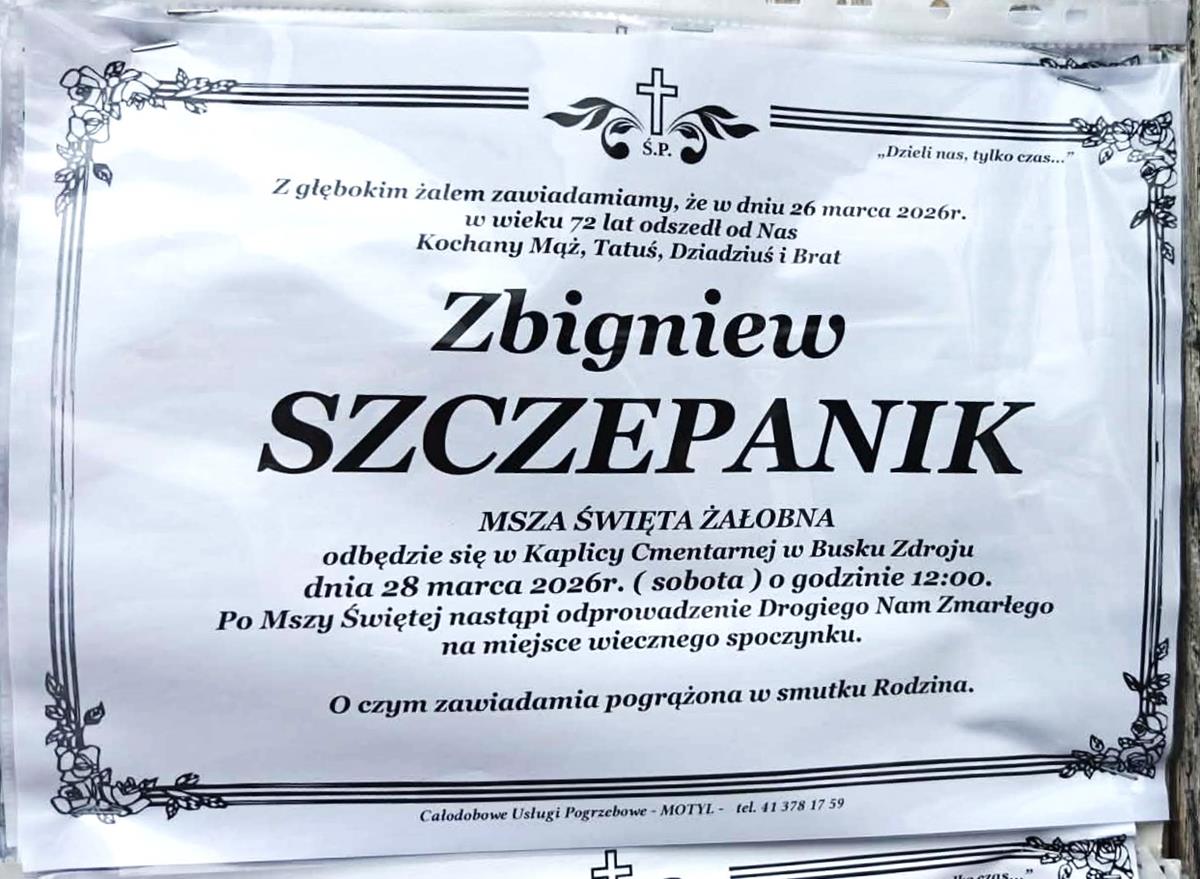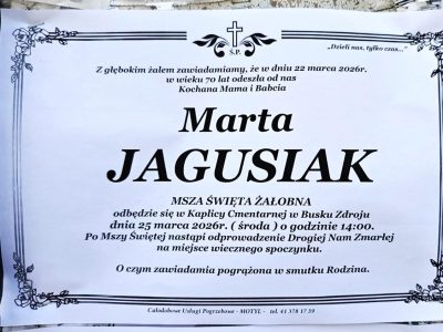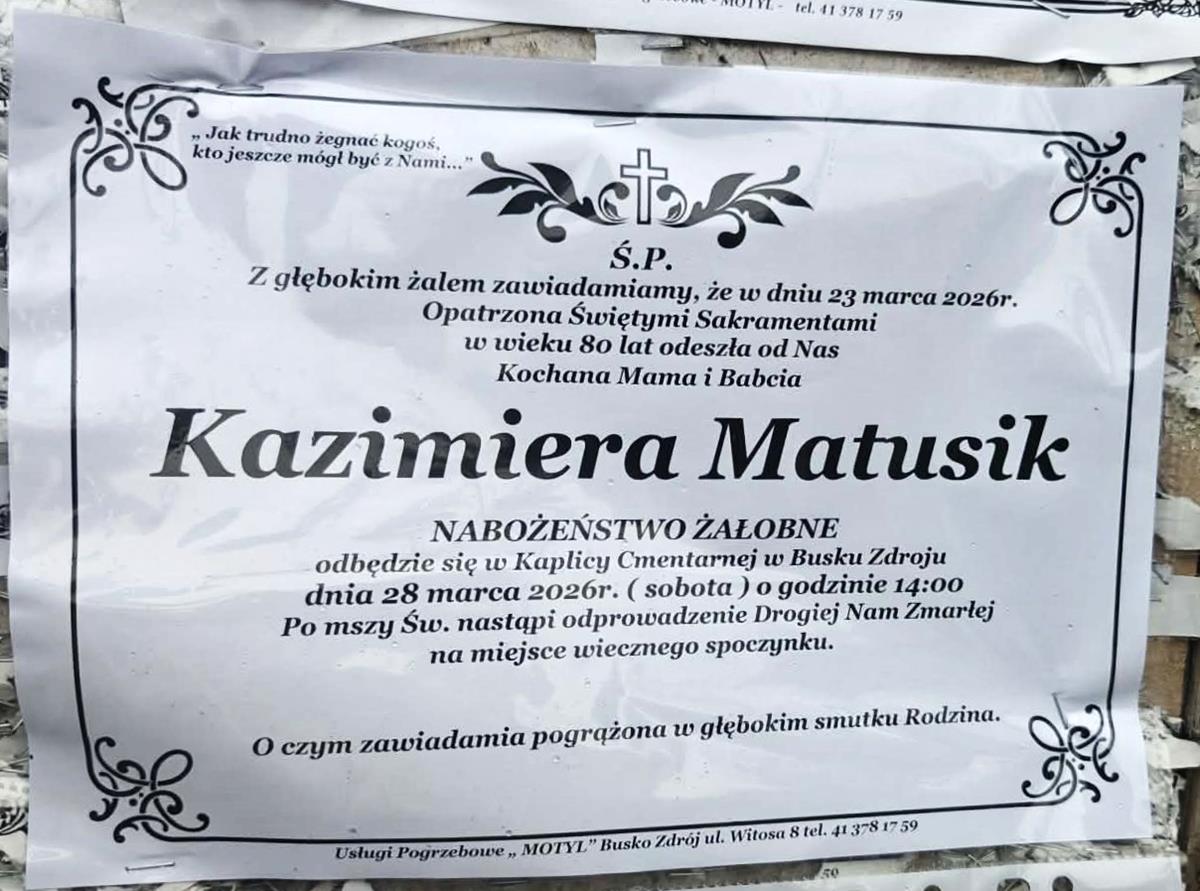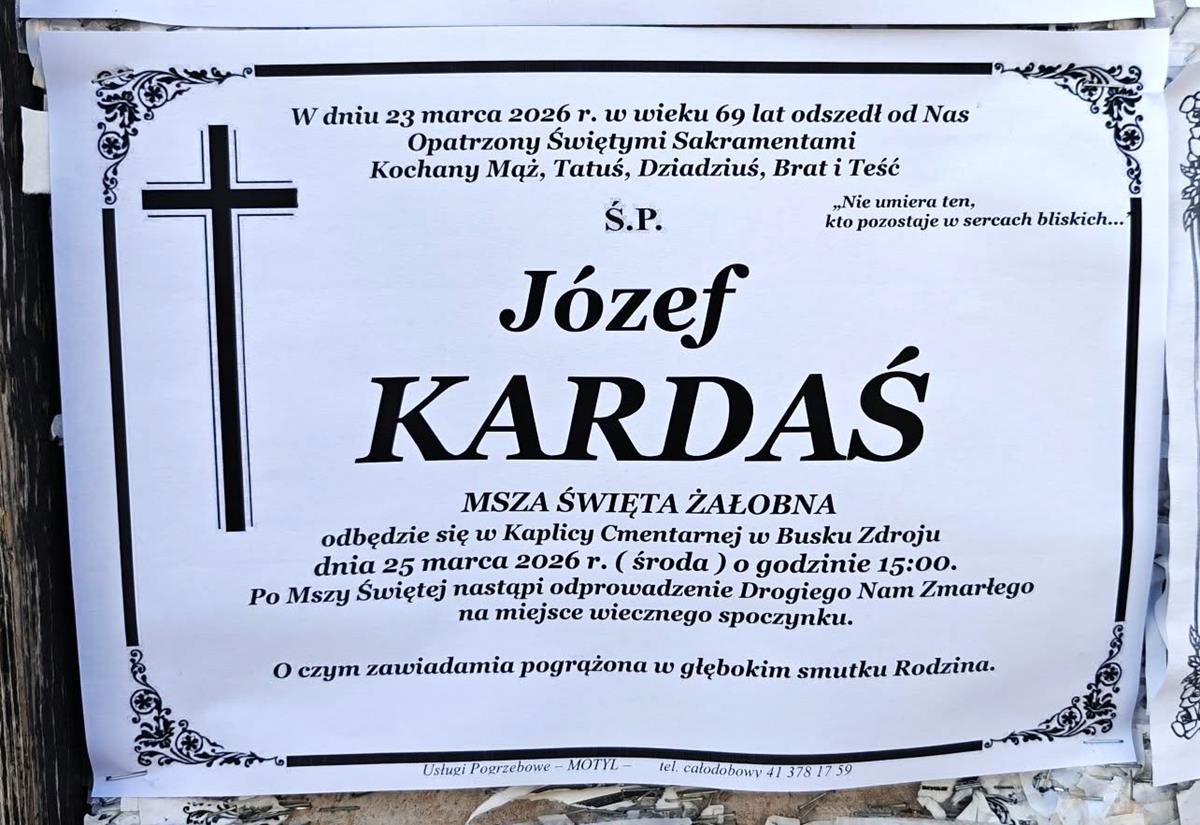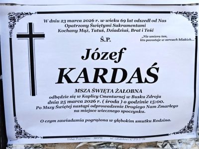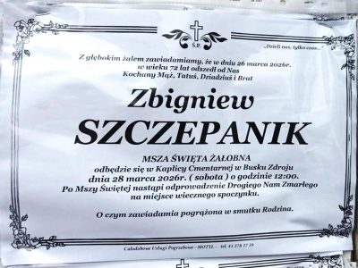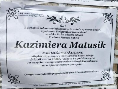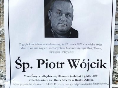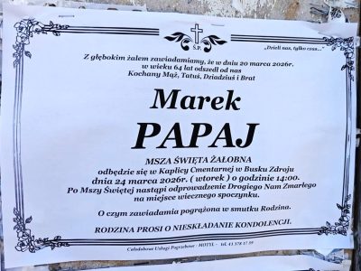 2 odpowiedzi do “⬛ NEKROLOGI 2026’13 [ 22 marca ÷ 28 marca]: +Marek Papaj ⬛ +Marta Jagusiak, +Piotr Wójcik, +Józef Kardaś, +Kazimiera Matusik, +Dariusz Stanisław Buczek, +Kazimiera Rajca, +Zbigniew Szczepanik”
