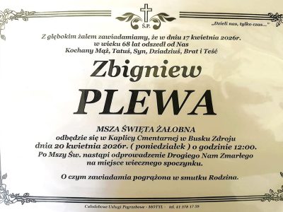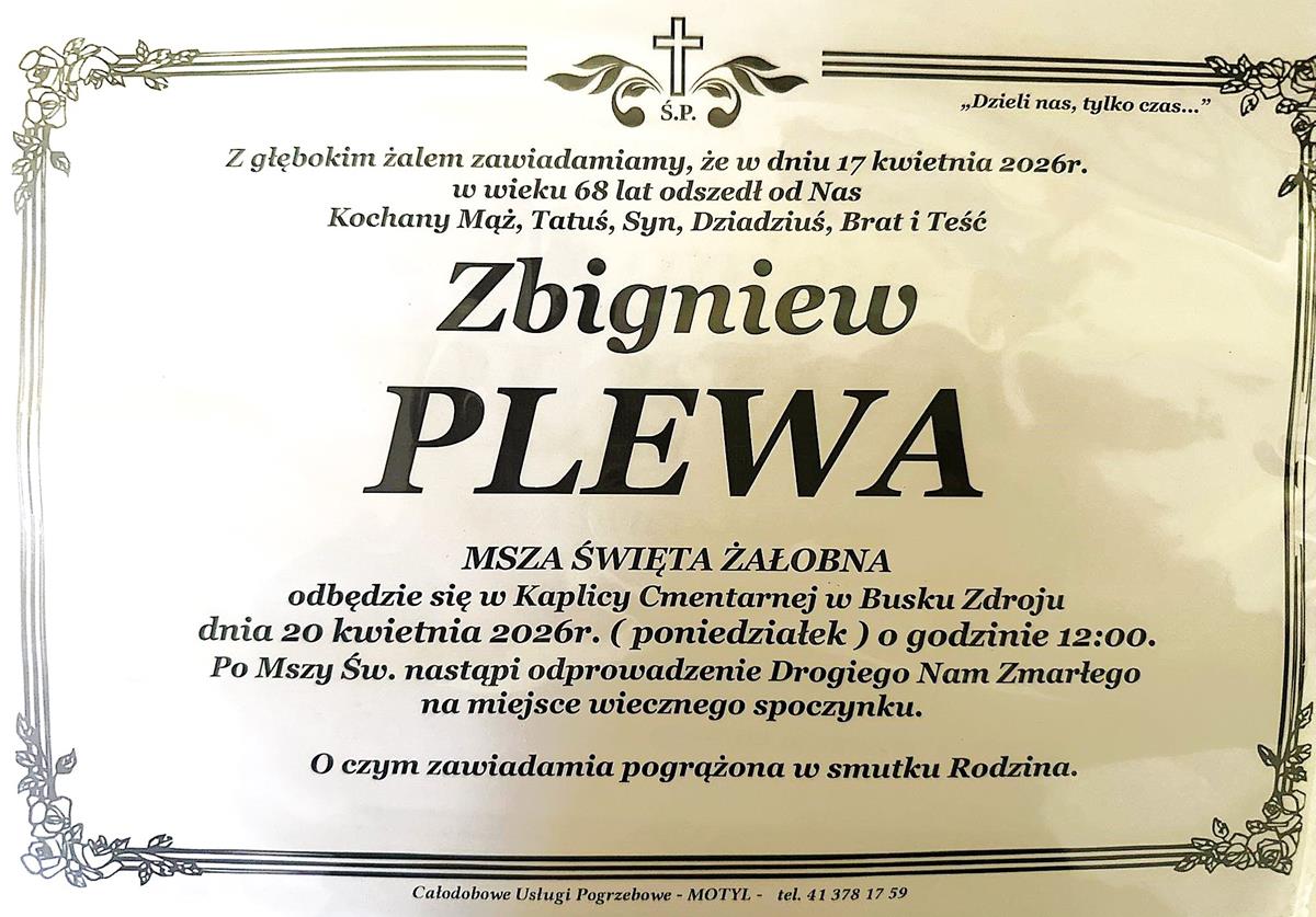 Rodzinie i bliskim zmarłego śp. Zbigniewa Plewy składam szczere wyrazy współczucia.