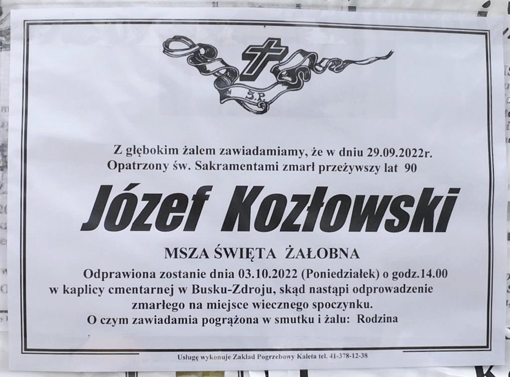 ⬛ NEKROLOGI 2022 [26 września ÷ 2 października]: +Jerzy Szymczyk, +Józef Kozłowski, +Klotylda Szczyrek, +Zofia Motyka