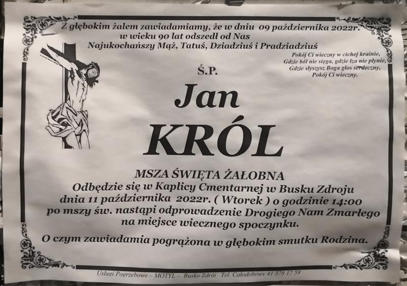 ⬛ NEKROLOGI 2022 [ 3 października ÷ 9 października]: +Jan Górniak, +Bolesław Stachowicz, +Krzysztof Bonek, + Stanisław Kurek, +Janina Pacyga, +Stefan Detko, + Jan Król - Internetowy Portal Informacyjny Mieszkańców Miasta i Gminy Busko-Zdrój