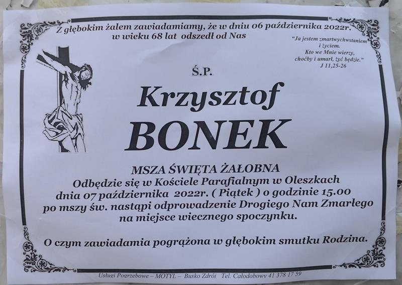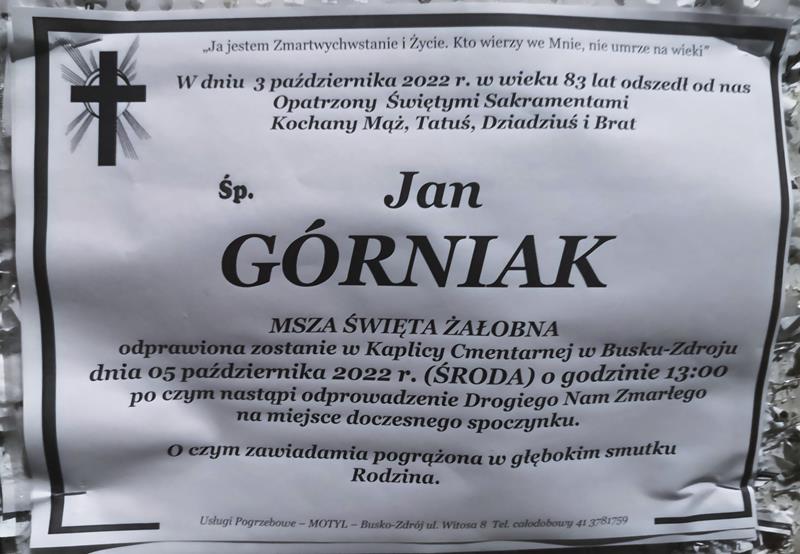 ⬛ NEKROLOGI 2022 [ 3 października ÷ 9 października]: +Jan Górniak, +Bolesław Stachowicz, +Krzysztof Bonek, + Stanisław Kurek, +Janina Pacyga, +Stefan Detko, + Jan Król