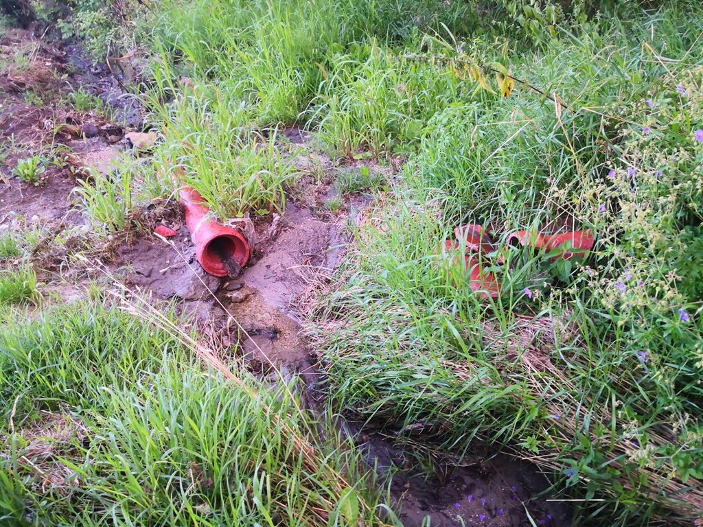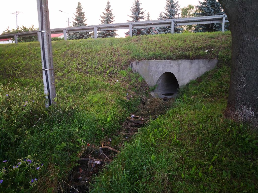 Przepust istnieje tam od 70 lat. Jest w zasadzie naprzeciwko zalewanego domu. Niestety dom zakłócił naturalny spływ wody z przepustu na pola