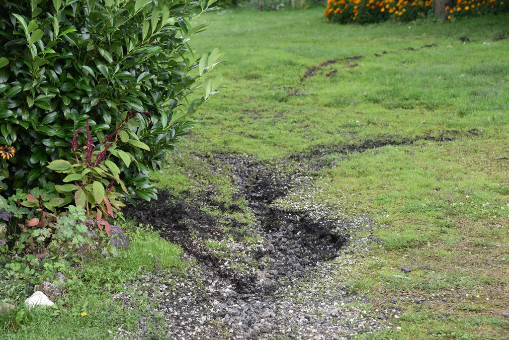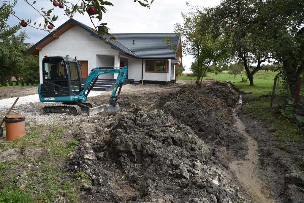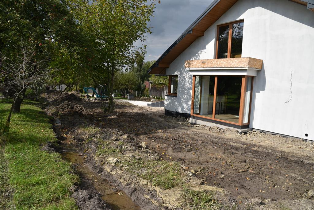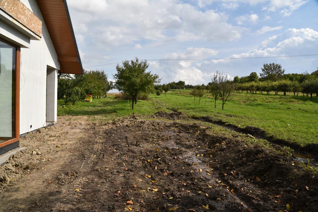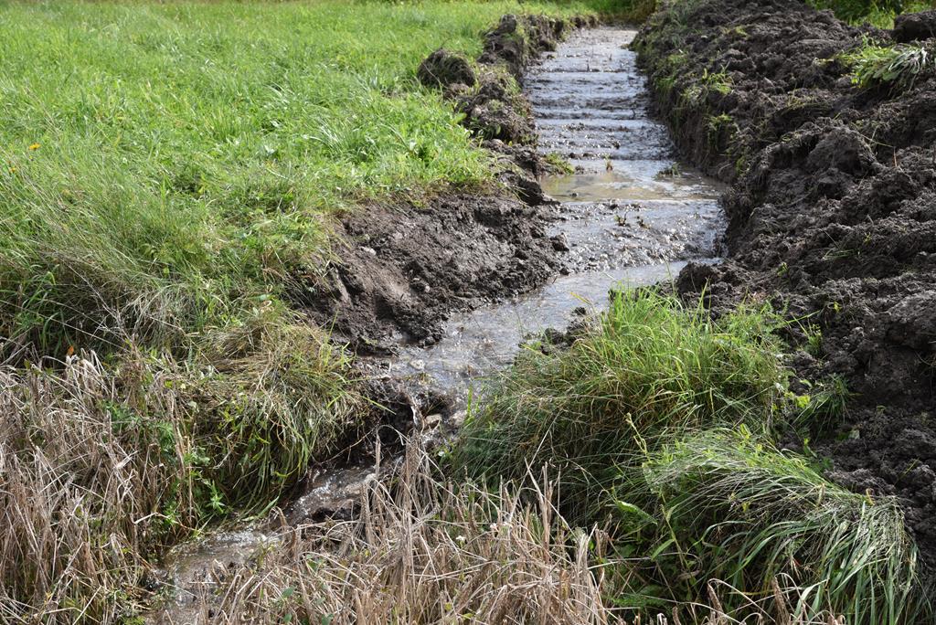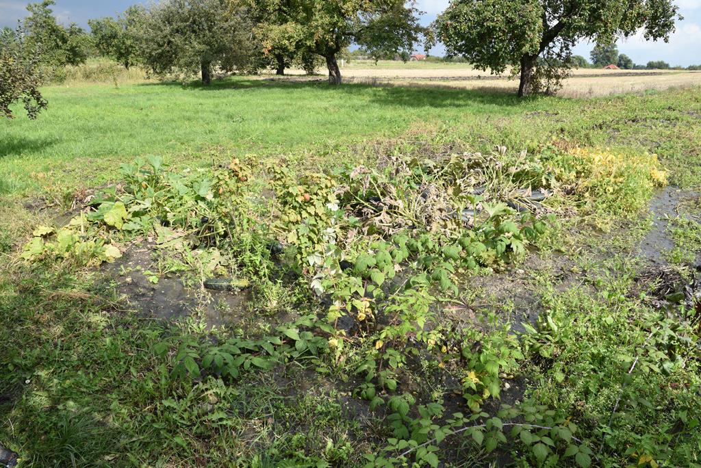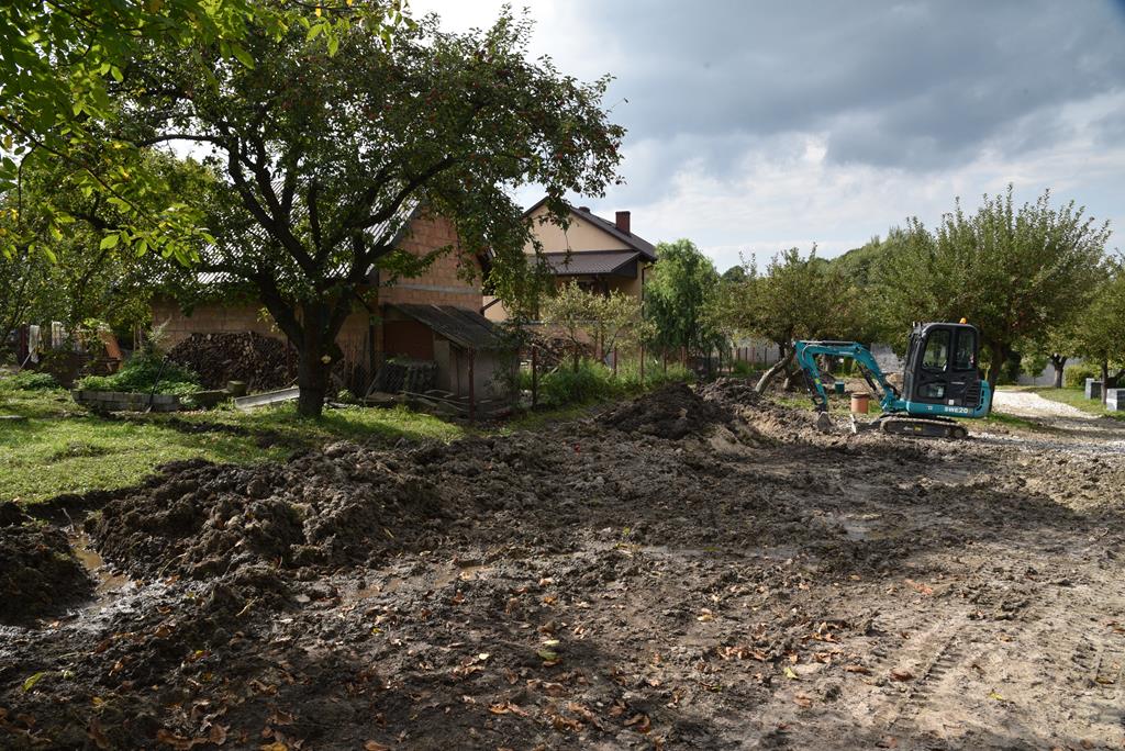 W międzyczasie – jak poinformowano nas – zdesperowani mieszkańcy własnymi siłami wykopali w ziemi prowizoryczne koryta dla tej wody, by z grubsza zapanować nad jej spływem, i zabezpieczyć przed zalewaniem i uszkodzeniami najbliżej stojący, świeżo wybudowany, nowy budynek. Dzięki temu część wody omija dopiero co zamieszkały przez młode małżeństwo z dzieckiem dom od południa i spływa wykopanym rowem po działce w kierunku drogi. Kolejne dwie odnogi strumienia przecinają zaś mały sad, woda z nich spływa przez pole nieskoszonego jęczmienia i wlewa się na sąsiednią posesję. Jej gospodarze, by ratować dom i dobytek zakupili odpowiednie rury i wykonali na szybko prowizoryczną kanalizację, która zbiera większość wody i odprowadza na ulicę, na wysokości sklepu.