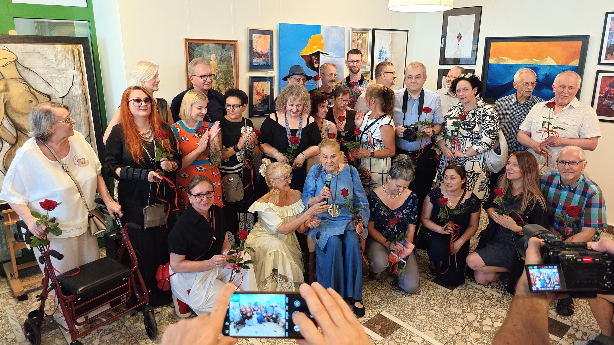 Największą niespodzianką wieczoru była obecność jednej z najbardziej cenionych postaci w polskim świecie sztuki Pani Elżbiety Dzikowskiej’ – historyczki sztuki, sinolożki, podróżniczki. Jej obecność na wystawie była nie tylko zaszczytem, ale również momentem, który nadał temu wydarzeniu szczególny charakter. Rozmowy z panią Elżbietą były pełne pasji, artystycznych refleksji i wspólnych rozważań o roli sztuki w życiu codziennym.