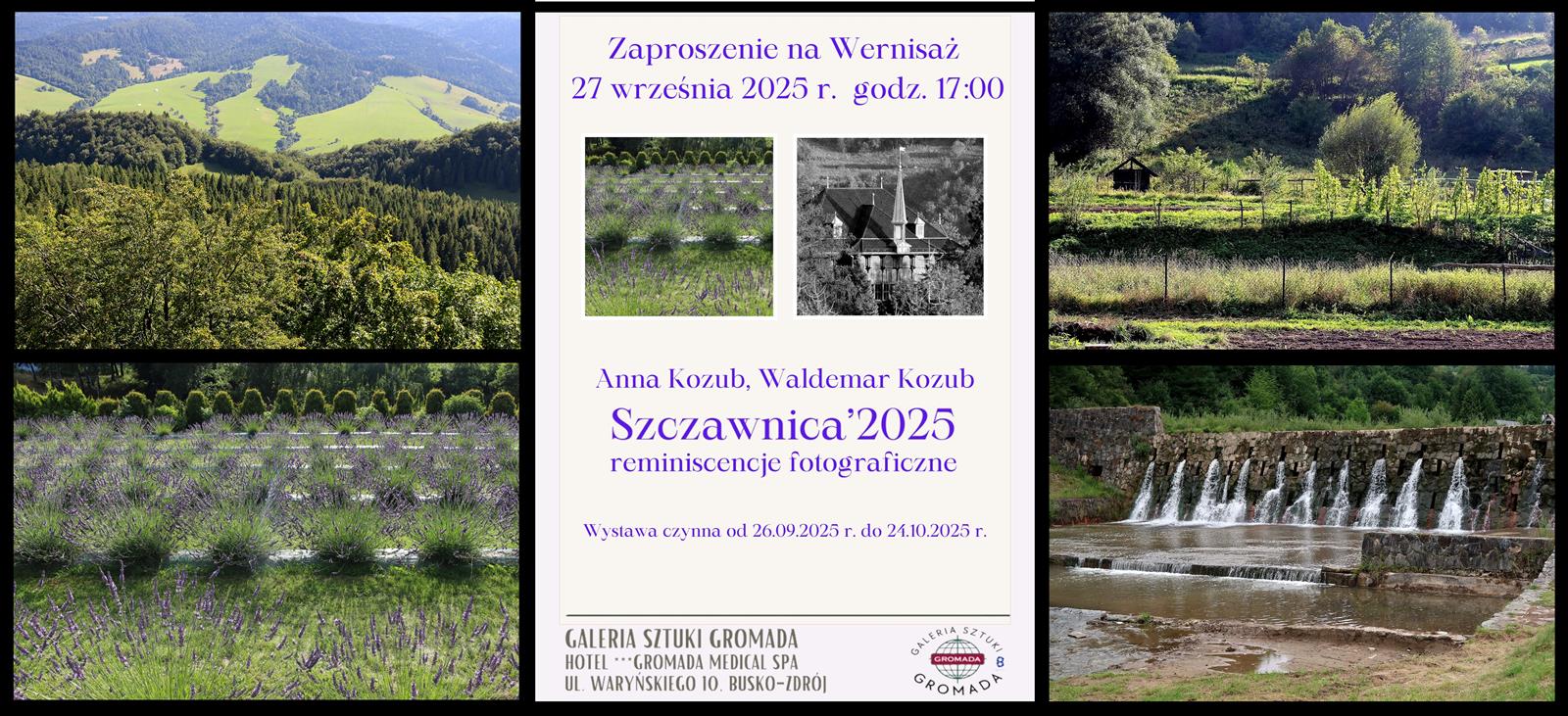 Galeria Sztuki GROMADA i Polskie Stowarzyszenie Edukacji Plastycznej Delegatura w Kielcach maja zaszczyt zaprosić w sobotę 27 września 2025 do Hotelu Gromada na wernisaż wystawy fotografii Państwa Anny i Waldemara Kozub „Szczawnica’2025 – reminiscencje fotograficzne” – – informuje 22.09.2025 na swoim fb’profilu Hotel Gromada Medical SPA w Busku-Zdroju