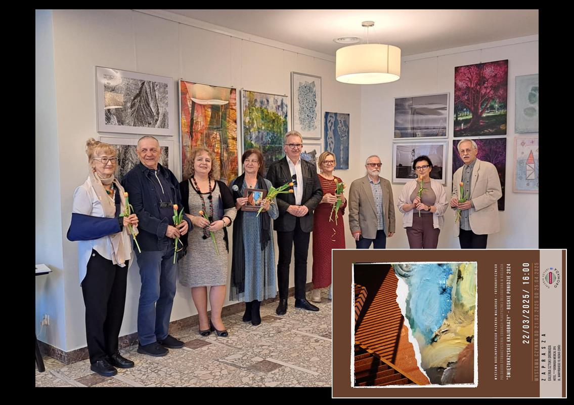 ○ 22.03.2025, Busko-Zdrój, Hotel Gromada’, Galeria Sztuki Gromada: Inauguracja wystawy „Świętokrzyskie Krajobrazy – Buskie Ponidzie 2024”. Na zdjęciu ( od lewej: Grażyna Zalewska, Marek Paweł Bachurski, Tamara Maj, Beata Borek, Grzegorz Kielesinski, Anna Kozub, Waldemar Kozub, Barbara Wnuk-Spirowska i Bogdan Ptak. / fot. Hotel Gromada w Busku-Zdroju ♂