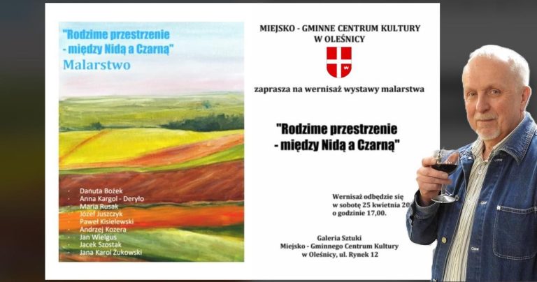 Miejsko-Gminne Centrum Kultury w Oleśnicy serdecznie zaprasza na wernisaż wystawy „Rodzinne przestrzenie – między Nidą a Czarną”, który odbędzie się 25 kwietnia 2026 r. o godzinie 17:00. „Pejzaż horyzontalny, Horyzont różny, niebanalny, Człowiek jak stwórca nieobliczalny (…)” „Pejzaż horyzontalny /Wiesław Dymny/ Pomiędzy rzekami Czarną a Nidą wyrasta pejzaż za pejzażem, a nieoczywista ziemia co chwilę … Czytaj dalej 🎨 Miejsko-Gminne Centrum Kultury w Oleśnicy: Wernisaż wystawy „Rodzinne przestrzenie – między Nidą a Czarną” – 25 kwietnia 2026 r. godz.: 17:00