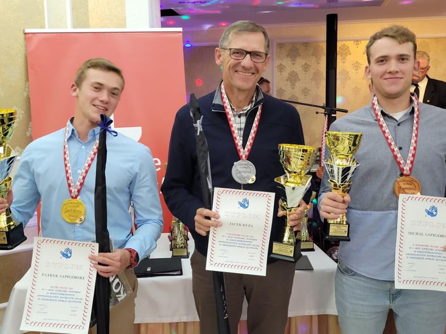 W najbardziej prestiżowym 5-boju dał się pokonać jedynie młodszemu o 37 lat (!) Patrykowi Sapigórskiemu z okręgu mazowieckiego. Zwyciężył natomiast w dwóch pozostałych wielobojach, w tym w 2-boju odległościowym (wcześniej 7-boju), w którym nie schodzi z podium od 1995 roku, tj. 28 lat, a mistrzem Polski został po raz piętnasty! W wieloboju tym wygrał tym razem minimalnie, bo o zaledwie 0,375 pkt przed Karolem Sapigórskiem z Mazowsza i o 5 pkt przed Janem Kitą z koła w Brodach. W 2-boju multiplikatorowym nasz senior zwyciężył przed wspomnianym Janem Kitą (który oddał najdłuższy rzut całych zawodów oburącz ciężarkiem 18 gram kołowrotkiem multiplikatorowym – 110,93 m, co ciekawe, aż o blisko 7 metrów lepszy od najdłuższego rzutu zawodów analogicznym sprzętem, ale kołowrotkiem spinningowym! – Tomasz Kościelniak – 104,15 m).