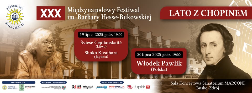 🟨 XXX „Lato z Chopinem”: 💥 Kawiarenka Festiwalowa z Włodkiem Pawlikiem i Jolantą Pszczółkowską-Pawlik - zwiastun rozpoczynającego się dziś w Busku-Zdroju XXX MF "Lato z Chopinem" im. Barbary Hesse-Bukowskiej - 19.07.2025, godz.12:00 - Internetowy Portal Informacyjny Mieszkańców Miasta i Gminy Busko-Zdrój