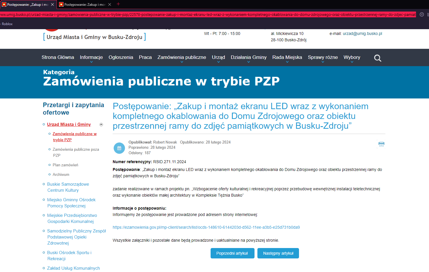 Na stronie UMIG możemy znaleźć Plan postępowań o udzielenie zamówień publicznych Gminy Busko-Zdrój na 2024 rok, czyli po prostu plan przetargów.