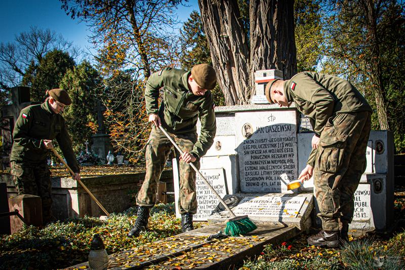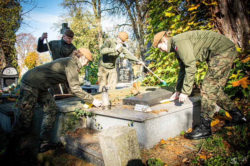 Żołnierze 10 Świętokrzyskiej Brygady Obrony Terytorialnej zapalili znicze pamięci oraz porządkowali groby bohaterów walk o niepodległość. Utrzymywanie tradycji dbania o porządek na grobach zmarłych żołnierzy oraz pomnikach pamięci ma miejsce nie tylko z racji zbliżającego się święta zmarłych, ale również kolejnej rocznicy święta Niepodległości.