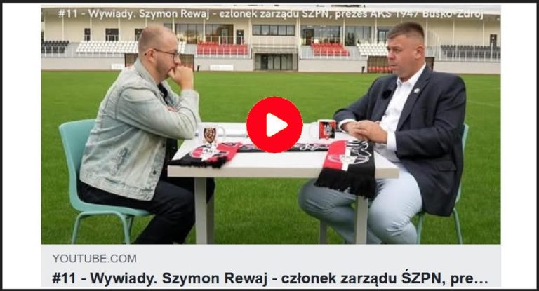 W 11. odcinku „Wywiadów”, 16.09.2025 r. gościem był Szymon Rewaj – członek zarządu Świętokrzyskiego Związku Piłki Nożnej oraz prezes AKS 1947 Busko-Zdrój. W zarejestrowanej kamerami rozmowie z Danielem Wichórem informuje m.in. o swoich obowiązkach w Świętokrzyskim Związku Piłki Nożnej, o aspektach rozwoju świętokrzyskiego futbolu, o co walczy AKS w sezonie 2025/26, jak będzie wyglądał futsalowy … Czytaj dalej ⚽ Ava Grądy: Wywiad z Szymonem Rewajem, Członkiem Zarządu Świętokrzyskiego Związku Piłki Nożnej i prezesem AKS 1947 Busko-Zdrój o świętokrzyskiej piłce, klubie i trudnych relacjach z BOSiR [VIDEO]